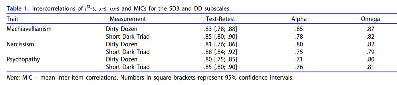 Statistically, it seems to show decent validity and reliability1. All of the traits correlate with each other and load on a general “dark factor”. It’s similar to low valence in the big five, but encompasses a distinct cluster of traits — low valence is closer to misaligned + incompetent while dark triad is more related to misalignment.