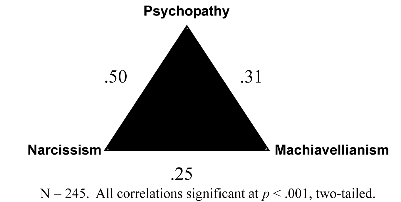I think that the dark triad suffers from underconceptualisation. The recurring pattern in all three of these traits is a fast life history strategy where you optimise for short term outcomes and gains over longer term horizons. The strategy doesn’t need to conscious, or evil for that matter, it’s just the universe expressing itself in different ways. Since everybody dies, some people have shorter horizons than others, but nobody has a permanent horizon.
