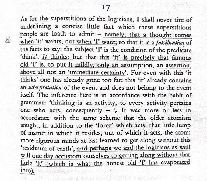If you believe in “regular philosophy” — stable identity, logic, moral realism, causality, free will — then what Nietzsche speaks of sounds bizarre. People with those views often cannot imagine what it feels like to hold those views, so they dismiss them.
