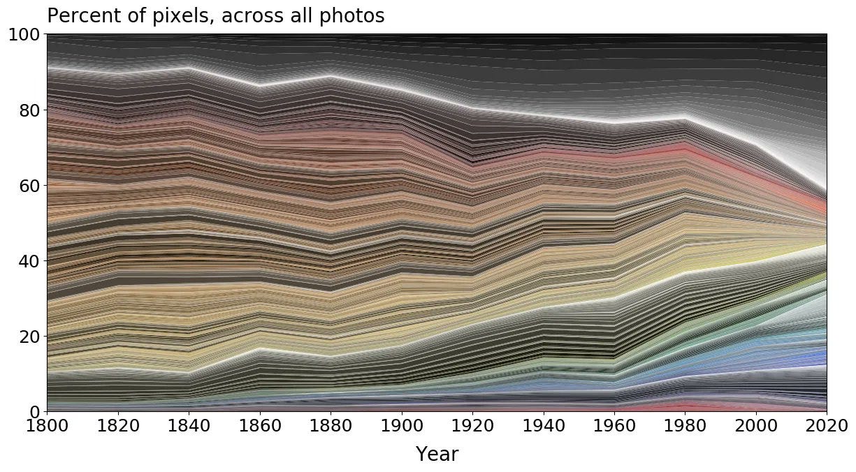 Constant increase in monochrome and colder colours ever since the 1800s. It seems more reasp, a type of artificial intelligence that assigns incentives and prices based on demand and conditions is a much more explanatory explanation for why culture has converged than computers.